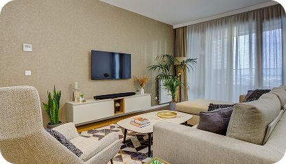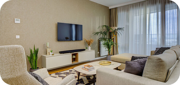 Stanovi su pažljivo uređeni i luksuzno opremljeni modernim nameštajem, vrhunskom kuhinjom, najnovijom tehnikom i udobnim prostorima koji pozivaju na uživanje i odmor.
