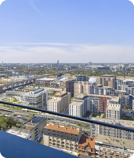 Sa terase se pruža impresivan pogled na gradsku panoramu, reku i mostove, gde ritam metropole, prelepi zalasci sunca i energija urbane svakodnevice stvaraju nezaboravan ambijent.